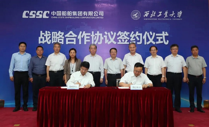 7月28日,中國(guó)船舶集團(tuán)有限公司與西北工業(yè)大學(xué)在西安簽署戰(zhàn)略合作協(xié)議。中國(guó)船舶集團(tuán)黨組書記、董事長(zhǎng)雷凡培,西北工業(yè)大學(xué)黨委書記張煒、校長(zhǎng)汪勁松出席簽約儀式。中國(guó)船舶集團(tuán)黨組成員、副總經(jīng)理杜剛,西北工業(yè)大學(xué)黨委常委、副校長(zhǎng)宋保維分別代表雙方在協(xié)議上簽字。簽約后,雙方圍繞共同服務(wù)國(guó)家戰(zhàn)略,就加強(qiáng)戰(zhàn)略合作、推進(jìn)協(xié)同創(chuàng)新、實(shí)現(xiàn)共同發(fā)展進(jìn)行了深入交流。