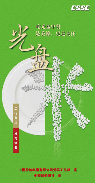 為認真貫徹落實習近平總書記關(guān)于制止餐飲浪費行為的重要指示精神,大力弘揚中華民族勤儉節(jié)約、珍惜糧食的文明用餐習慣,中國船舶集團積極開展“制止餐飲浪費 踐行光盤行動”專項宣傳引導活動。