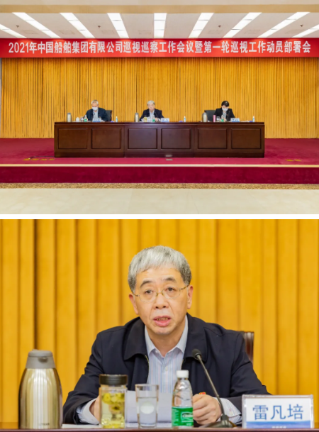 3月31日,中國船舶集團有限公司召開2021年巡視巡察工作會議暨第一輪巡視工作動員部署會。中國船舶集團黨組書記、董事長、巡視工作領導小組組長雷凡培,紀檢監察組組長、黨組成員、巡視工作領導小組副組長李佳穎出席會議并講話。