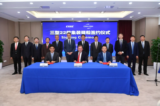 3型22艘綠色集裝箱船簽約,中國船舶集團喜獲歷史最大單筆集裝箱船訂單。