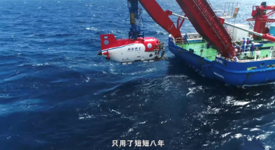 “蛟龍”號載人潛水器在2012年圓滿完成研制和海試任務,創(chuàng)造了當時國際上作業(yè)型載人潛水器最大潛深紀錄:7062米。作業(yè)范圍可覆蓋99.8%的全球海洋面積。