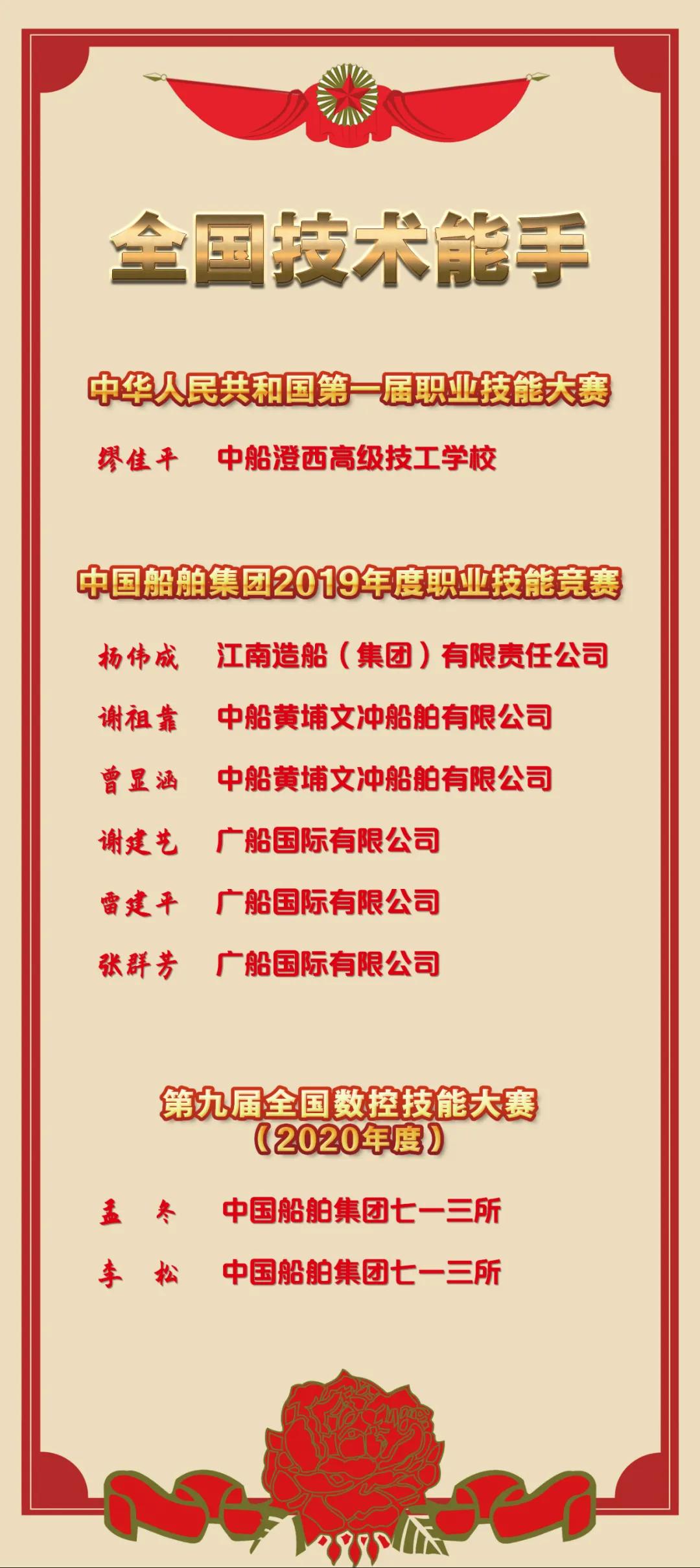 船舶高技能人才又獲表彰。中國船舶集團“全國技術能手”再添 9 人!