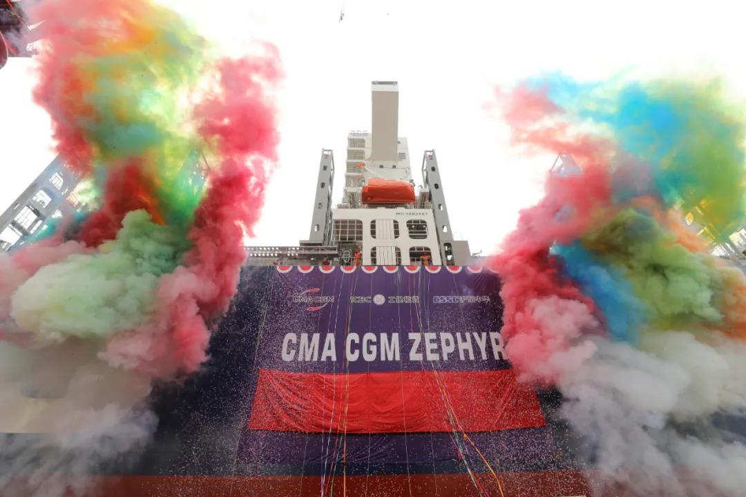 秋陽杲杲,碩果累累。8月27日,在滬東中華繁忙的碼頭岸線,中國船舶集團為法國達飛集團建造的10艘15000TEU集裝箱船項目的首制船“達飛·和風”號順利命名交付,這艘曾由中法兩國領導人見證簽約的中法友誼巨輪將從上海揚帆起航,奔赴服務遠東至中東航線。