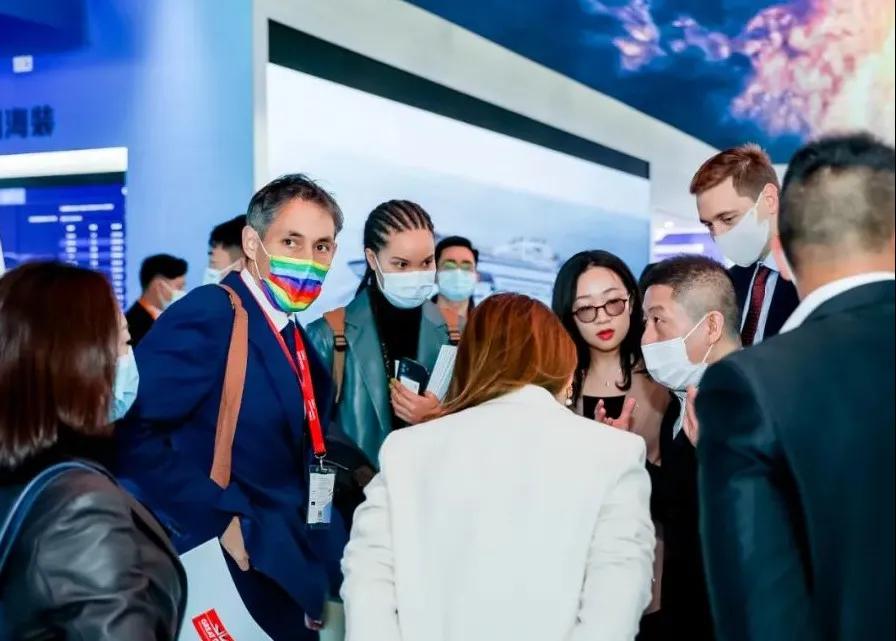 中國船舶集團(tuán)展臺摒棄了“傳統(tǒng)色彩矩陣”,用“深海藍(lán)”加 “風(fēng)機(jī)白”打造出大氣磅礴的開合式復(fù)合空間域,細(xì)節(jié)上則采用生態(tài)為先、大道至簡、科技為尚三大設(shè)計(jì)語言,將“風(fēng)傳送”“海推動”“碳排放”業(yè)務(wù)生態(tài)鏈條進(jìn)行了全方位的解構(gòu),吸引了眾多觀展人士駐足。