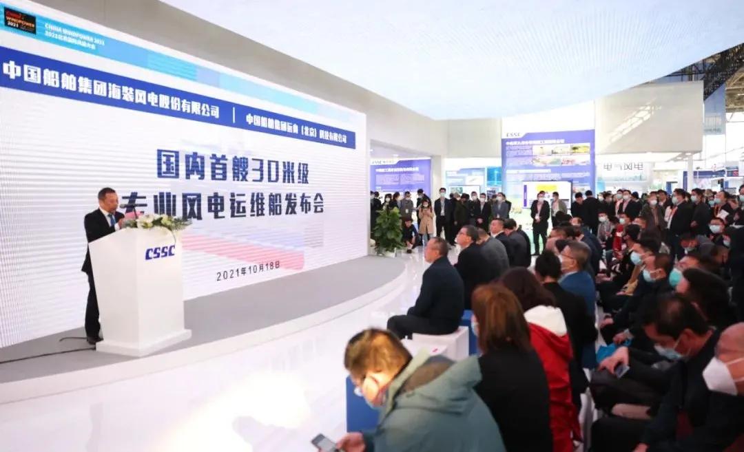 在風(fēng)能展上,中國海裝與遠(yuǎn)舟科技聯(lián)合設(shè)計(jì)制造的國內(nèi)首艘30米級專業(yè)風(fēng)電運(yùn)維船發(fā)布,最大裝載38噸,可抗浪高4米,可搭乘12名運(yùn)維人員和6名船員,具有高強(qiáng)度、輕重量的結(jié)構(gòu)特點(diǎn)和優(yōu)良的安全性、快速性、防腐性、耐波性等,將于今年正式投運(yùn)。