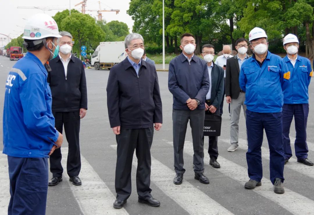 5月15日,中國船舶集團有限公司黨組書記、董事長雷凡培到集團公司旗下上海外高橋造船有限公司調研疫情防控和復工復產工作。中國船舶集團黨組成員、副總經理孫偉參加調研。