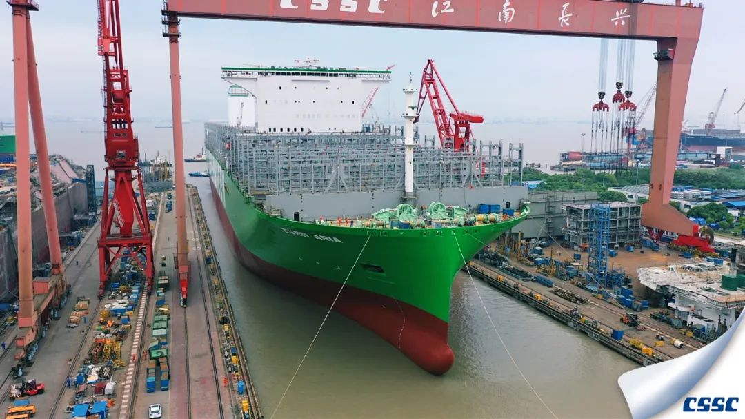 新船出塢前,造船工人對船舶外貌進行補漆,以最靚麗的姿態迎接船舶出塢。
