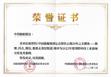《中國船舶集團定點幫扶云南20年之全媒體——微博、抖音、微信、報紙走基層報道》通過微博、抖音、微信、報紙等全媒體平臺創新形式,將軍工央企宣傳報道助力脫貧攻堅、推進鄉村振興、踐行社會責任優秀成果提升到一個全新的媒體融合報道領域。