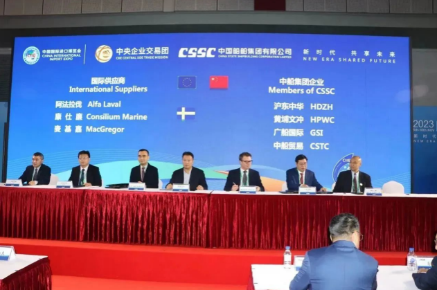 中國船舶集團有限公司黨組書記、董事長溫剛參加第六屆進博會暨虹橋國際經濟論壇開幕式,并參加巡館活動。中國船舶集團黨組成員、副總經理盛紀綱應邀參加虹橋國際經濟論壇“開放創新賦能企業發展”分論壇,出席11月6日下午舉行的第六屆進博會國資委中央企業交易團中國船舶交易分團采購集中簽約儀式并致辭。