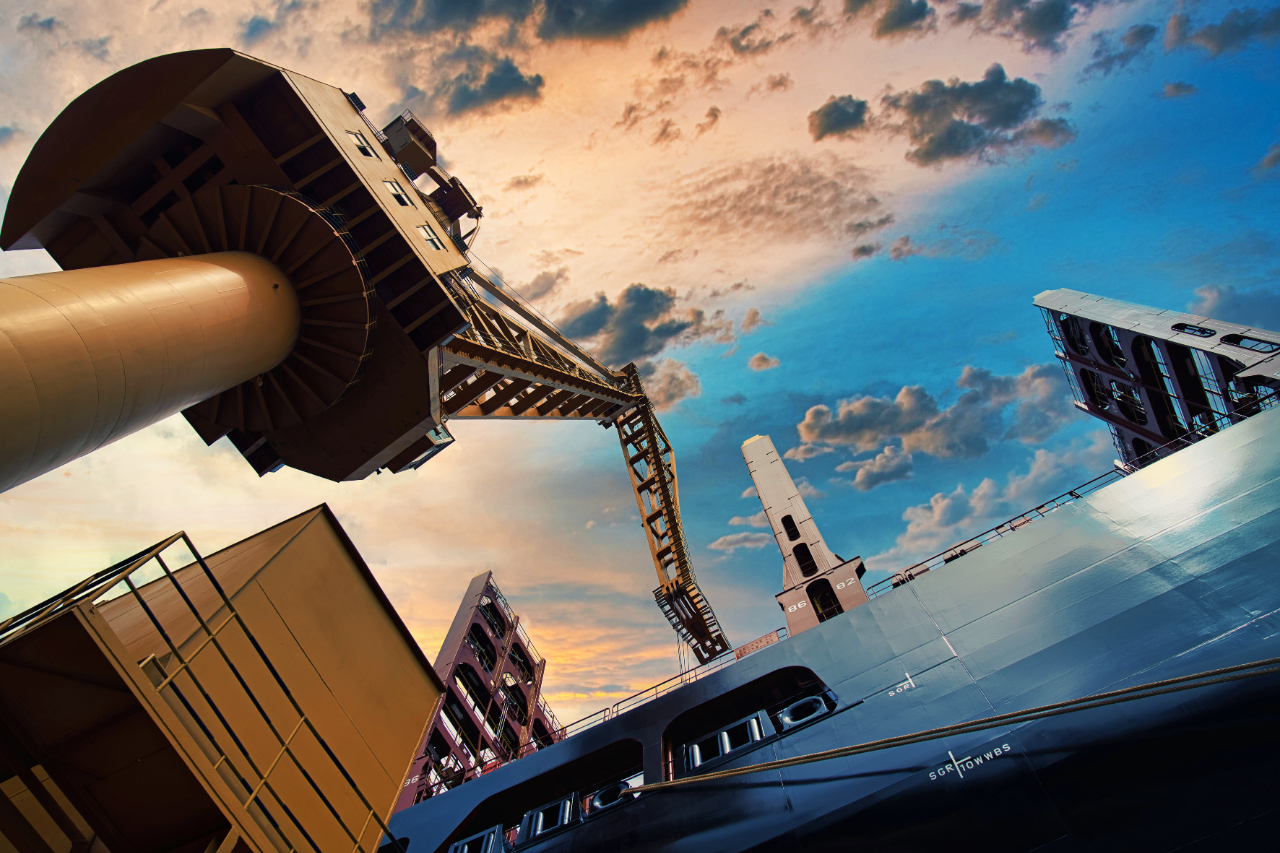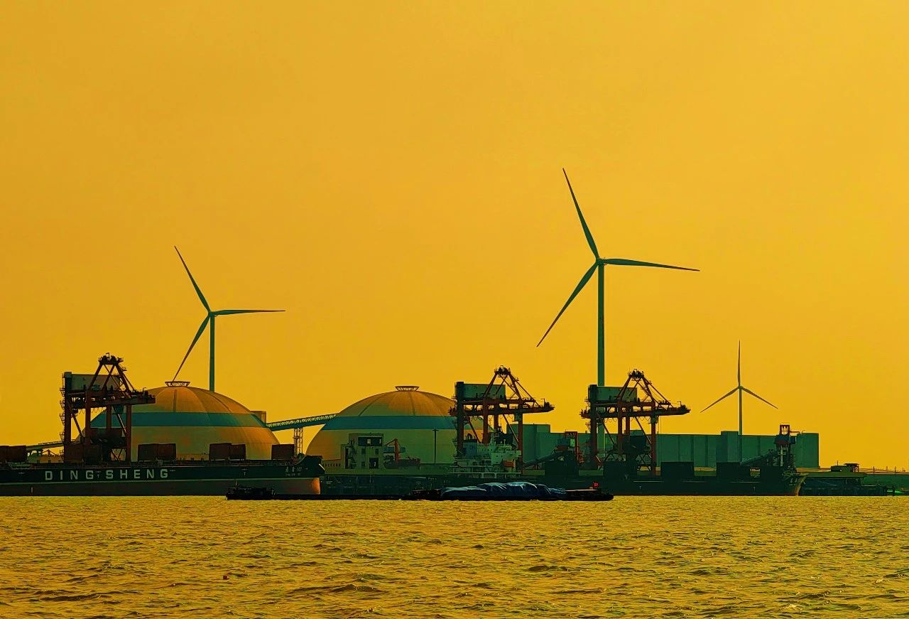 中船澄西建造的風力發電塔塔筒矗立在長江邊,為千家萬戶送去源源不斷的綠色能源。