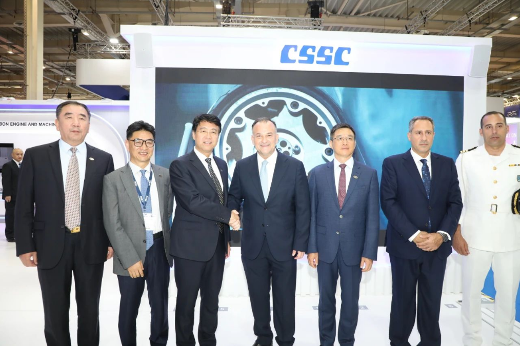 此次展會,中國船舶集團攜旗下19家成員單位參展,有關成員單位負責人率隊赴展會開展重點船海項目經營洽談并拜訪當地和周邊國家客戶。集團公司以“共贏未來”為參展主題,設置集團總體區、綠色航運解決方案區、低碳環保配套設備區共3個展示區域,重點展示了135500總噸大型郵輪、175000方LNG運輸船、24000箱超大型集裝箱船、210000噸氨燃料散貨船、LNG雙燃料VLCC等一系列高技術、高附加值明星產品,以及CPGC-WinGD 10X92DF-M甲醇雙燃料發動機、船用碳捕捉系統等全球船東高度關注的綠色低碳配套設備。同時,通過展臺上醒目的品牌標識、層級化的品牌體系圖、富有感染力的品牌推介視頻,首次面向全球客戶,立體化展示“中國船舶”品牌及下屬企業品牌和產品品牌體系,進一步強化了集團公司品牌形象。