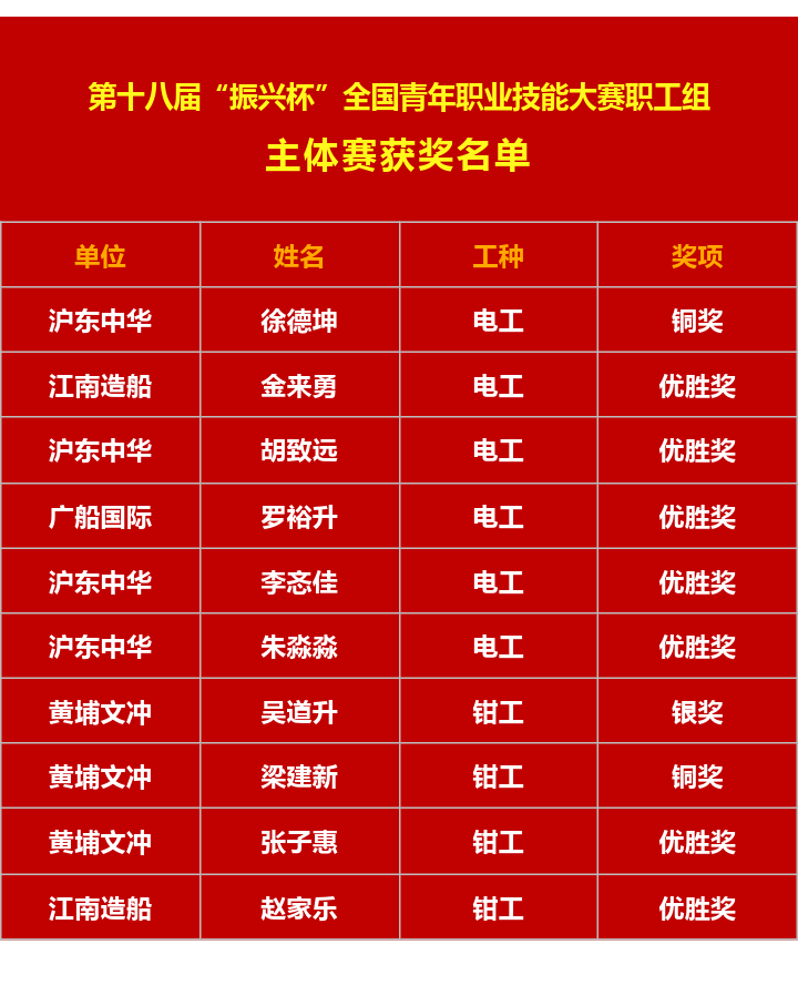 船舶青年在第十八屆“振興杯”全國青年職業技能大賽和創新創效競賽中獲佳績