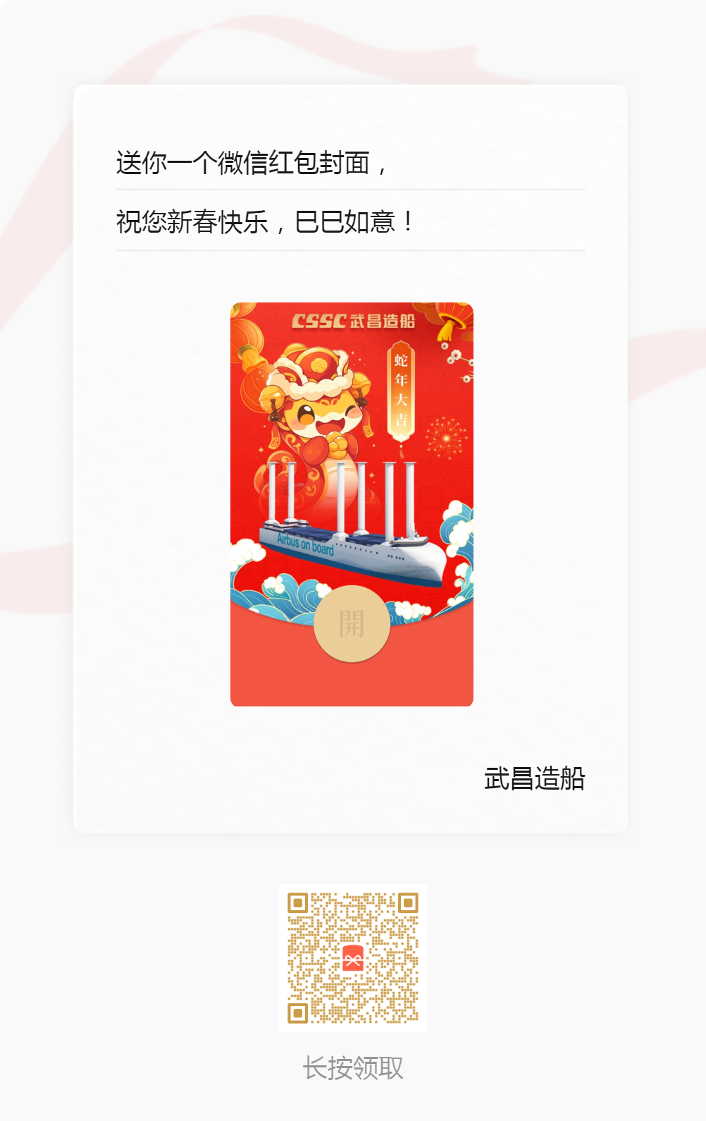 | 紅包封面:武昌造船/黃埔文沖/七〇二所/中船發動機/中船動力/中船九院/中船郵輪/七二五所