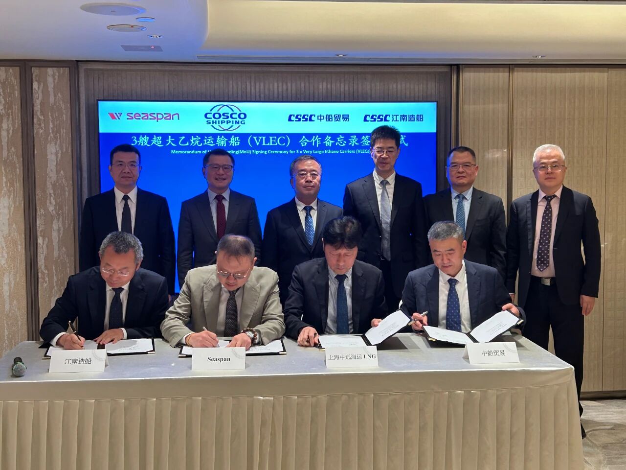 王國強同時見證了中船集團與中旅集團簽署戰(zhàn)略合作協(xié)議,中船集團旗下江南造船聯(lián)合中船貿(mào)易與Seaspan、上海中遠海運LNG簽署超大乙烷運輸船(VLEC)合作備忘錄;與相關(guān)中央企業(yè)舉行會談并簽署戰(zhàn)略合作協(xié)議。