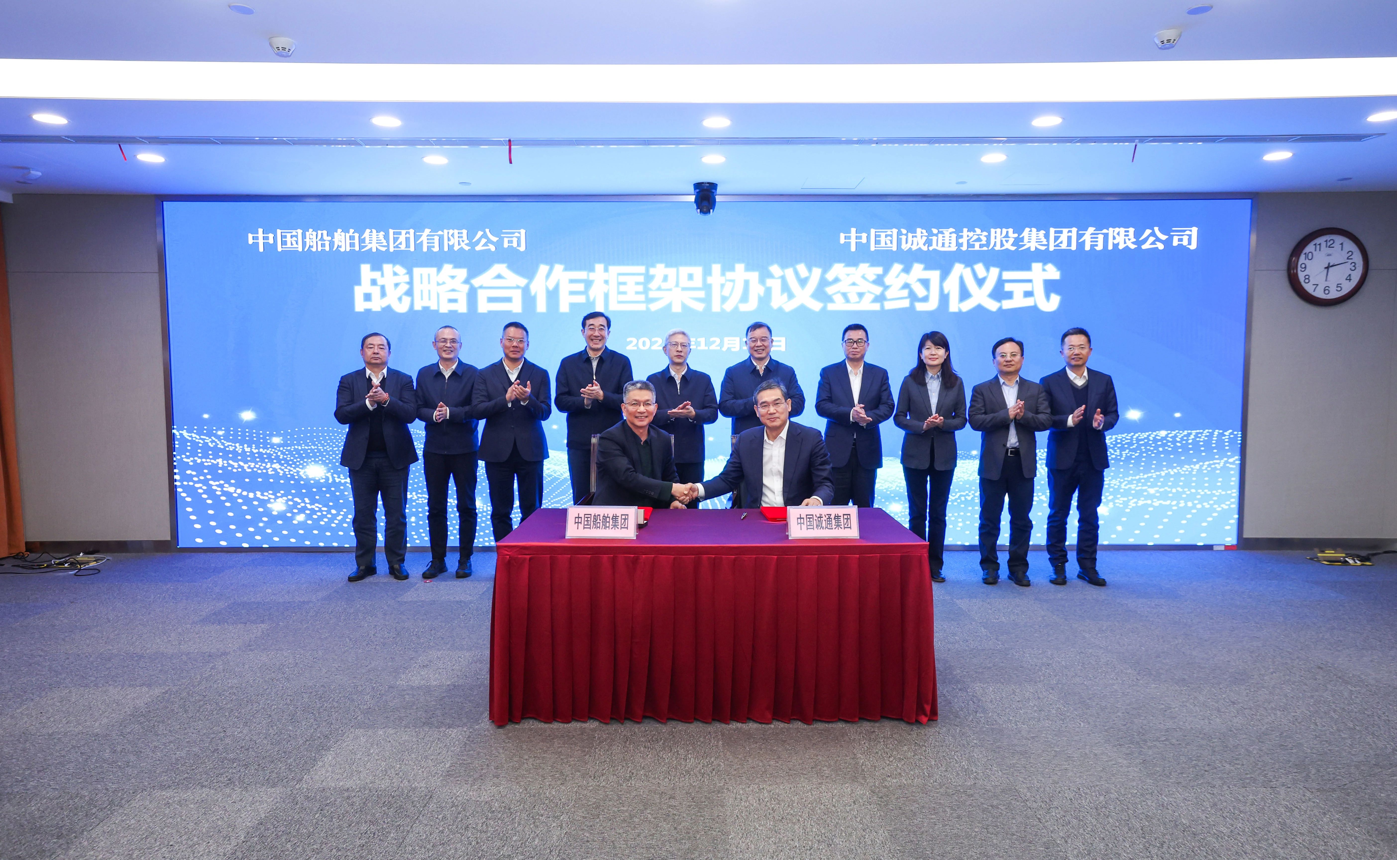 12月16日,中國(guó)船舶集團(tuán)有限公司與中國(guó)誠(chéng)通控股集團(tuán)有限公司在上海簽署戰(zhàn)略合作框架協(xié)議。中船集團(tuán)黨組書記、董事長(zhǎng)徐鵬,中國(guó)誠(chéng)通集團(tuán)黨委書記、董事長(zhǎng)奚正平,黨委委員、副總經(jīng)理童來(lái)明出席簽約儀式。中船集團(tuán)黨組成員、總會(huì)計(jì)師朱永紅,中國(guó)誠(chéng)通集團(tuán)副總經(jīng)理、總法律顧問(wèn)唐國(guó)良分別代表雙方在協(xié)議上簽字。簽約前,雙方就進(jìn)一步加強(qiáng)溝通交流、深化多領(lǐng)域合作進(jìn)行了交流探討。