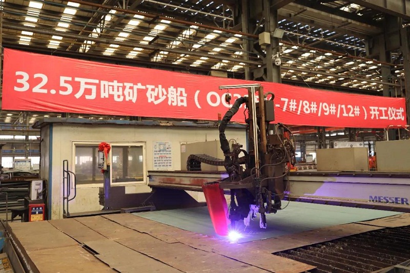 ????32.5萬噸礦砂船船長340米,型寬62米,型深29.5米,結構吃水21.4米,續航能力25500海里。此次開工儀式在北船重工聯合廠房切割區進行,以視頻連線的方式全程向船東直播。(孫德浩 蘆風軍供稿)