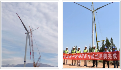 山西平定100兆瓦工程項目首臺機組完成吊裝。該項目位于山西省陽泉市平定縣東南,距離平定縣城約25公里,將安裝40臺“海裝造”H140-2.5兆瓦風力發電機組,首臺機組安裝成功,標志著中國海裝在低風速領域又邁進一大步。