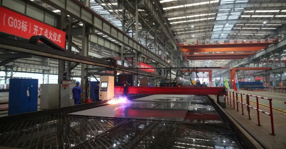 ????齒鋸轟鳴,火焰飛濺。近日,武船集團承接的深圳至中山跨江通道鋼箱梁制造項目正式點火開工。