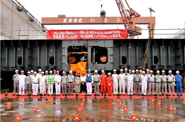 一船入塢,一船主體成型,一船開始?xì)怏w試航,并且全是高端船型,中國船舶集團(tuán)旗下滬東中華正全力提速,搶抓生產(chǎn)、搶抓時效。