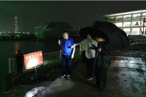 中船九江公司接到九江市防汛指揮所通知后,第一時間連夜組織應急分隊投入防汛抗洪戰斗,安排公司及所屬各單位人員在九江市八里湖新開河西堤、彭澤芙蓉墩鎮芙蓉村下芳湖內堤、定點扶貧點柴桑江洲6號村等責任段進行24小時值班值守。