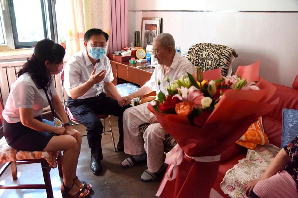 七〇七所黨委書記走訪慰問了3位抗日戰(zhàn)爭時期參加革命工作的老同志,98歲高齡的于維新、92歲高齡的陳修生和96歲高齡的陳育林,感謝他們?yōu)閲?、為民族的付出,以及為七〇七所作出的貢獻,向他們表示崇高的敬意。