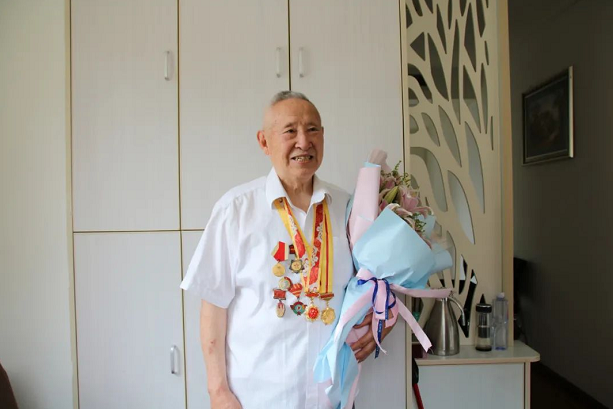 七院黨委書記、黨委副書記帶隊走訪慰問了健在的抗日戰(zhàn)爭時期及以前參加革命工作的李俠、邢家千、于占全、楊海川、肖元壽、宋振英等6位老同志,送去院黨委的祝福和慰問金,向他們表示感謝和崇高敬意。6位老同志年齡都在90歲以上,最年長的李俠老人已101歲。