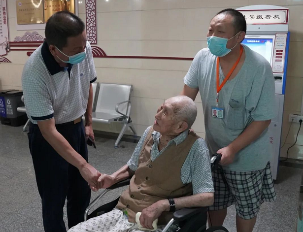 七一五所現有兩位參加抗戰(zhàn)時期革命工作的老同志,分別是94歲的王子芳和92歲的蘆前林。七一五所黨委書記帶隊來到杭州市中醫(yī)院,現場慰問了王子芳老同志,向他表達敬意。電話慰問了回廣東老家探親的蘆前林同志,轉達黨組織的關懷,并向他送上祝福。