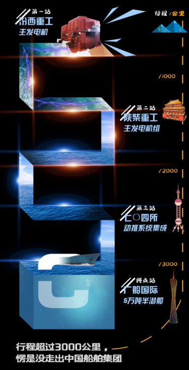最終,汾西重工自主研制的首型電力推進中壓發電機,在經過陜柴重工主發電機組合體、七〇四所動力推進系統集成后,將抵達終點站——廣船國際為中遠海特建造的5萬噸半潛船。