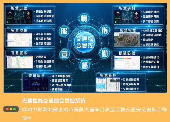 中國船舶集團(tuán)旗下七一六所 研發(fā)的杰瑞智能交通綜合管控系統(tǒng)、智能交通信號控制系統(tǒng)和杰瑞信息系統(tǒng) 受到業(yè)主青睞!