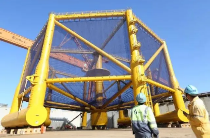 2018年,武船集團打造的國內首座大型全潛式深海漁業養殖裝備——“深藍1號”交付,運往山東省日照市黃海水域,開創了全球溫暖海域養殖三文魚的先河。一個養殖周期,可育成三文魚30萬條。