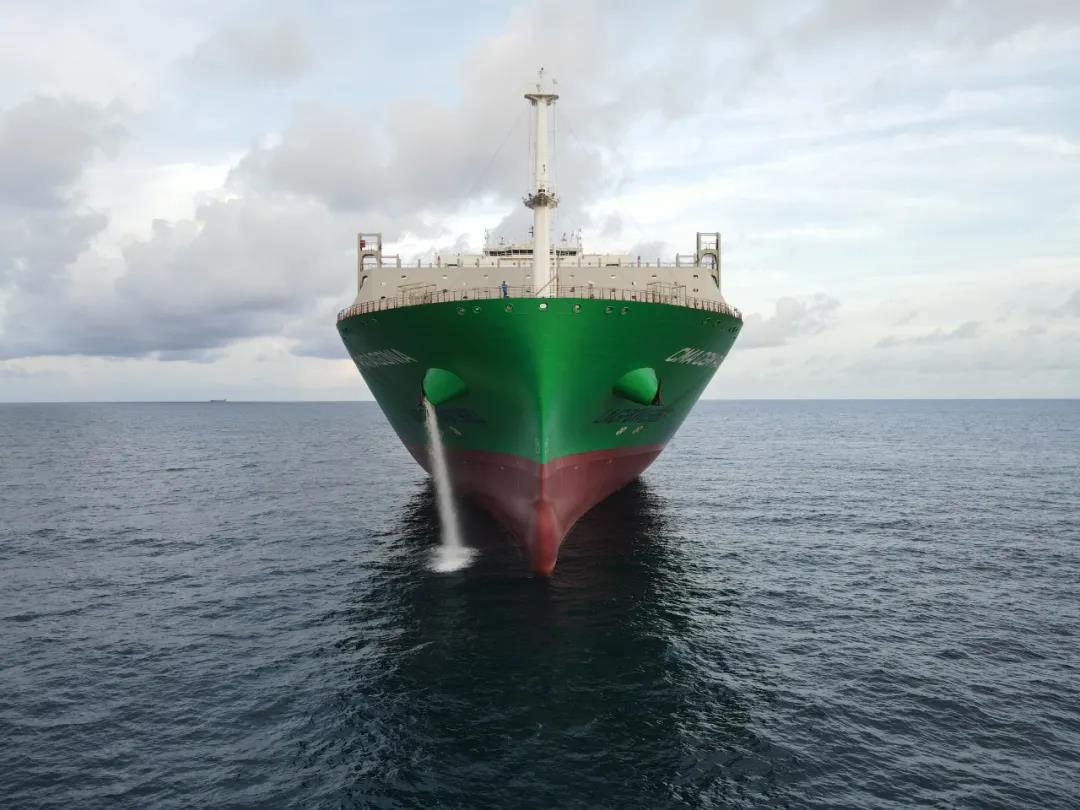 采用薄膜型燃料艙、雙燃料推進(jìn)。以LNG為主要燃料,采用了中國船舶集團自主品牌主機雙燃料WinGD主機,配置了GTT MARK III薄膜式燃料艙,容量達(dá)14000立方米,可支持船舶往返亞歐航線。
