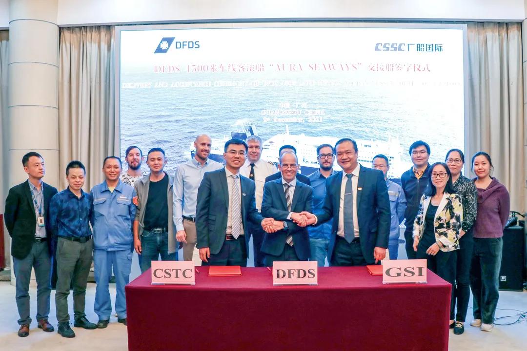 12月9日,由中國(guó)船舶集團(tuán)旗下廣船國(guó)際聯(lián)合中船貿(mào)易為北歐最大的航運(yùn)和物流公司,丹麥DetForenede Dampskibs-Selskab(簡(jiǎn)稱(chēng):DFDS)航運(yùn)公司建造的600客/4500米車(chē)道豪華客滾船首制船實(shí)現(xiàn)“云交付”。