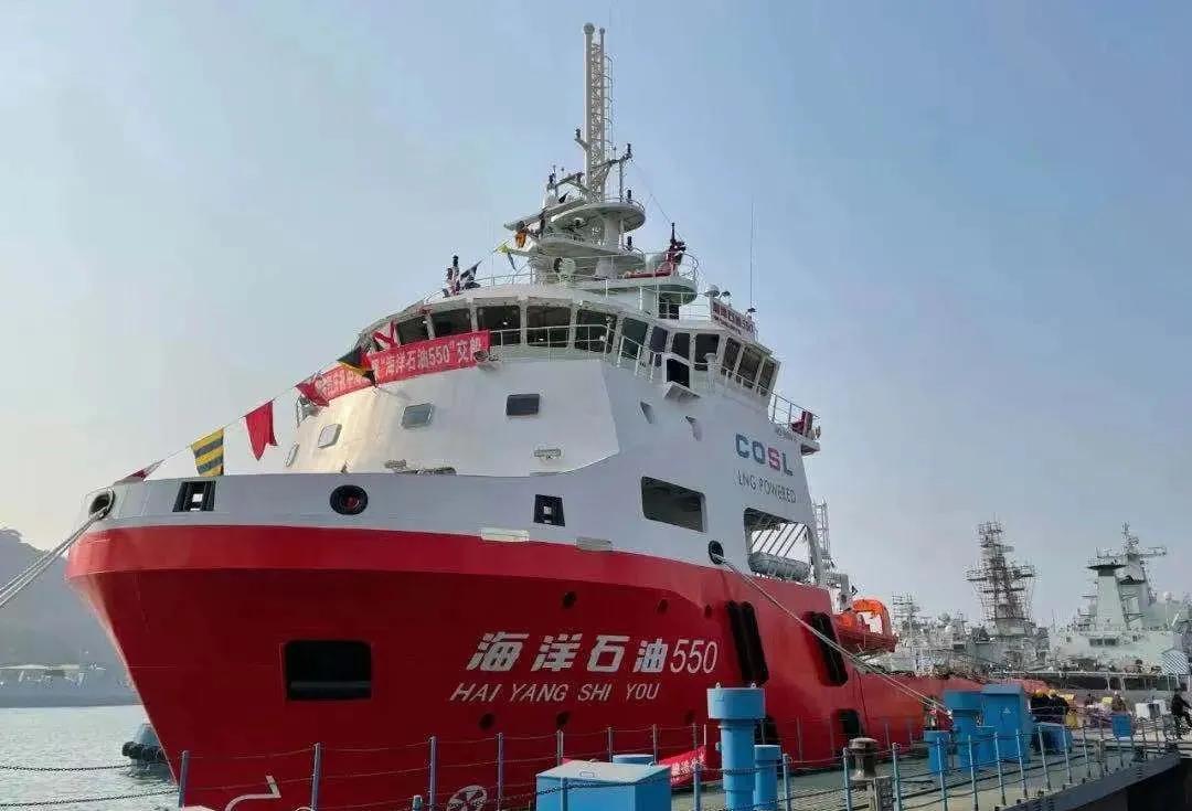 △ “海洋石油550”號的全船電力系統和推進系統均由七〇四所供貨,其交付代表著中國海上油氣田第一次出現了新能源船舶。