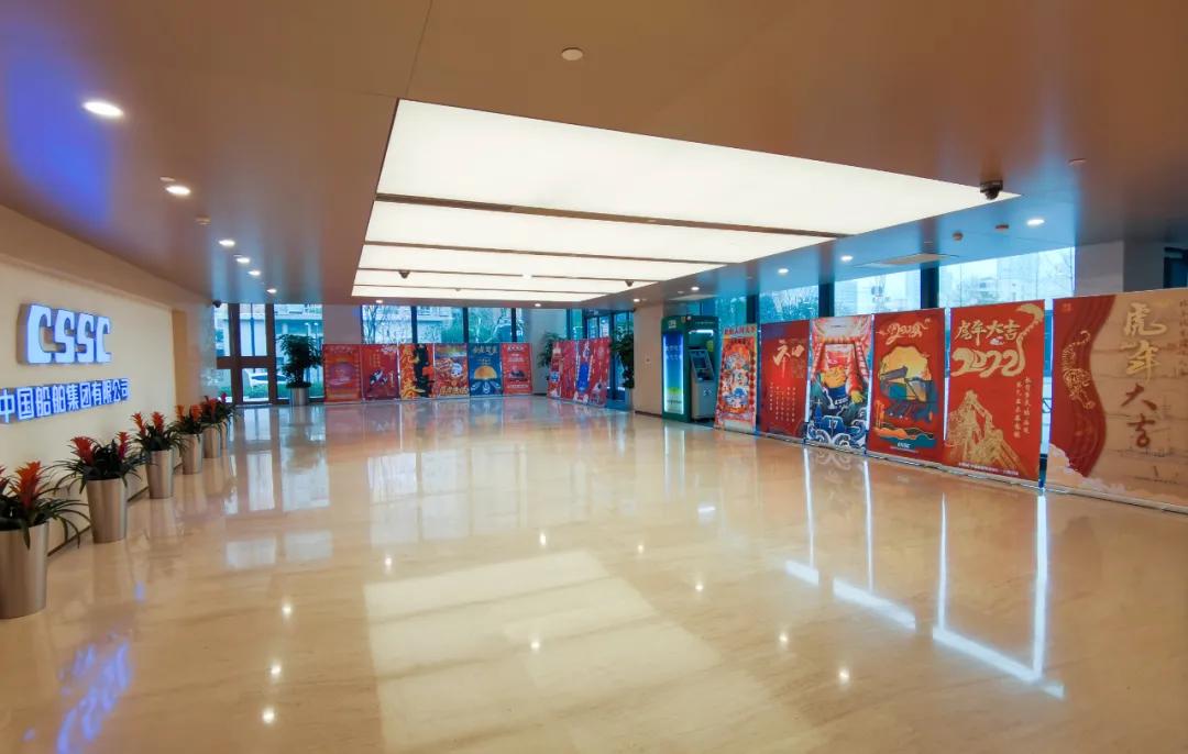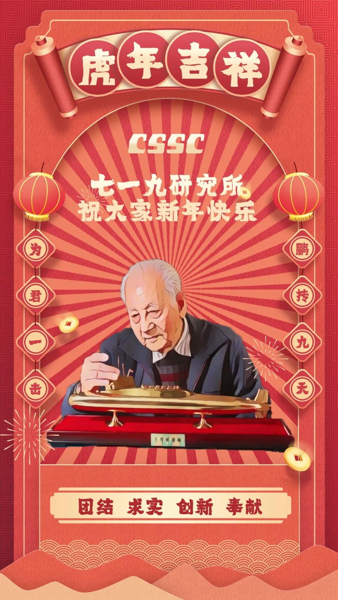 節(jié)日的煙花詮釋喜慶,大紅的燈籠點亮祝福!黃旭華院士作為七一九所典型人物代表,認(rèn)真注視著他為之奉獻一生的艇,也反映了這條戰(zhàn)線上科技工作者們“團結(jié)、求實、創(chuàng)新、奉獻”的工作作風(fēng)。“為君一擊 鵬摶九天”暗藏“一九”二字,反映出七一九所肩負的責(zé)任之大,使命之重,表達了軍工人將船舶事業(yè)做大做強的決心。