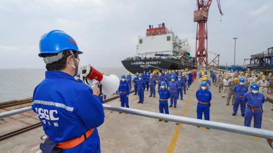 4月25日,根據(jù)上海市經(jīng)信委和中國(guó)船舶集團(tuán)關(guān)于分批有序推動(dòng)企業(yè)復(fù)工復(fù)產(chǎn)的部署要求,經(jīng)崇明區(qū)政府和相關(guān)疾控專家的專項(xiàng)檢查及工作指導(dǎo),中國(guó)船舶集團(tuán)旗下滬東中華造船長(zhǎng)興造船基地實(shí)現(xiàn)復(fù)工復(fù)產(chǎn)。