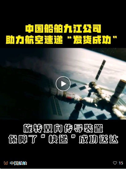 天舟四號貨運飛船是我國空間站建造階段的首發航天器,其作用是為空間站運輸物資、補給燃料、下行廢棄物,具備并網供電、應急通信等能力,確??臻g站組合體在軌平穩運行。在本次發射任務中,中國船舶集團旗下中船九江承擔旋轉雙向傳導裝置的研制工作,保障了“天舟四號”快遞成功送達。作為空間站建造階段的“首艘船”,承載著中船九江人的智慧與心血。