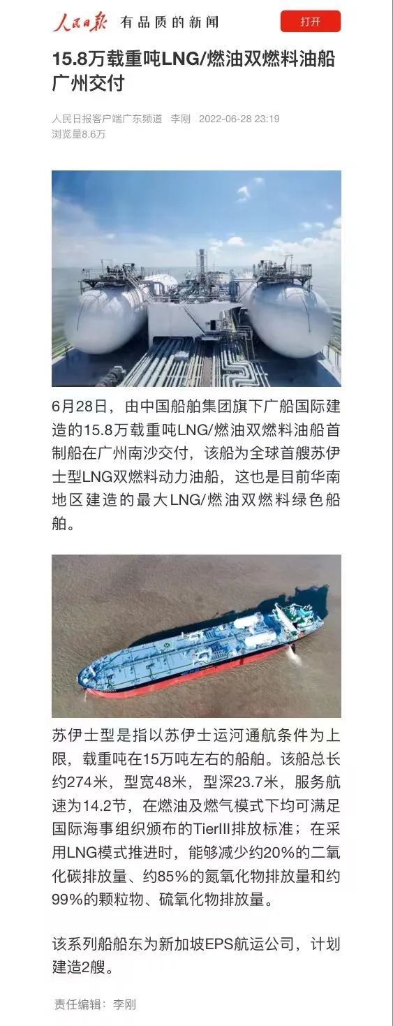 2022年5月30日交付,標志著廣船國際成功攻克LNG雙燃料動力船舶的研發(fā)和建造技術(shù),成為了華南地區(qū)首家自主研發(fā)和建造LNG雙燃料成品油船的船企。