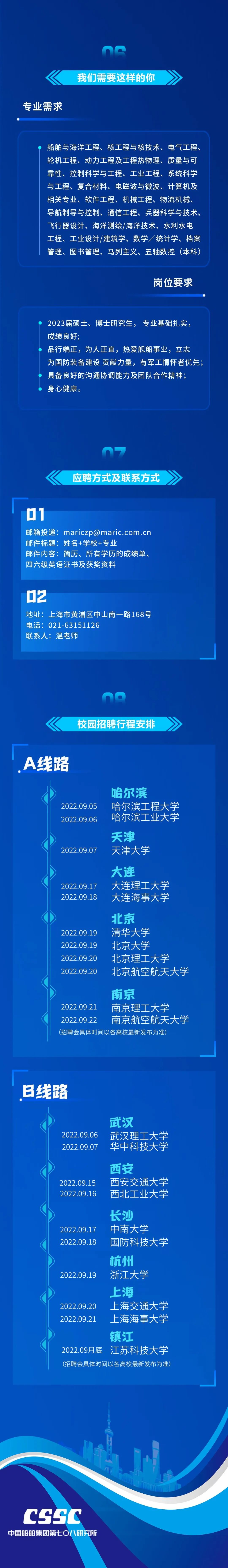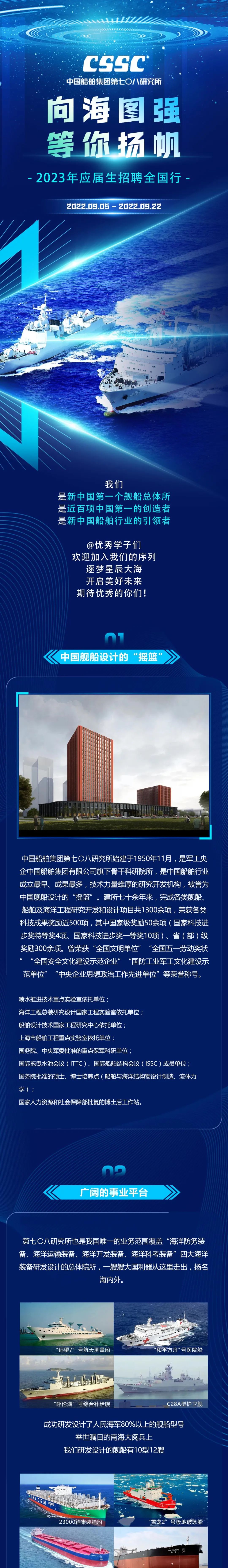 中國船舶七〇八所2023年應屆生招聘行程出爐!