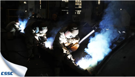 “弧光映面龐,耳聞奔雷響。鋼鐵分段合,奮斗連軸忙”。武漢船機工業園結構件廠房內,海工升降系統安裝架正在焊接中,船舶電焊工全副武裝,三人成組,他們分段焊接,兄弟齊心,其利斷金,用樸實的行動在生產一線攻堅克難,用勤勞書寫船舶人奮斗的華章,用實際行動向黨的二十大獻禮!