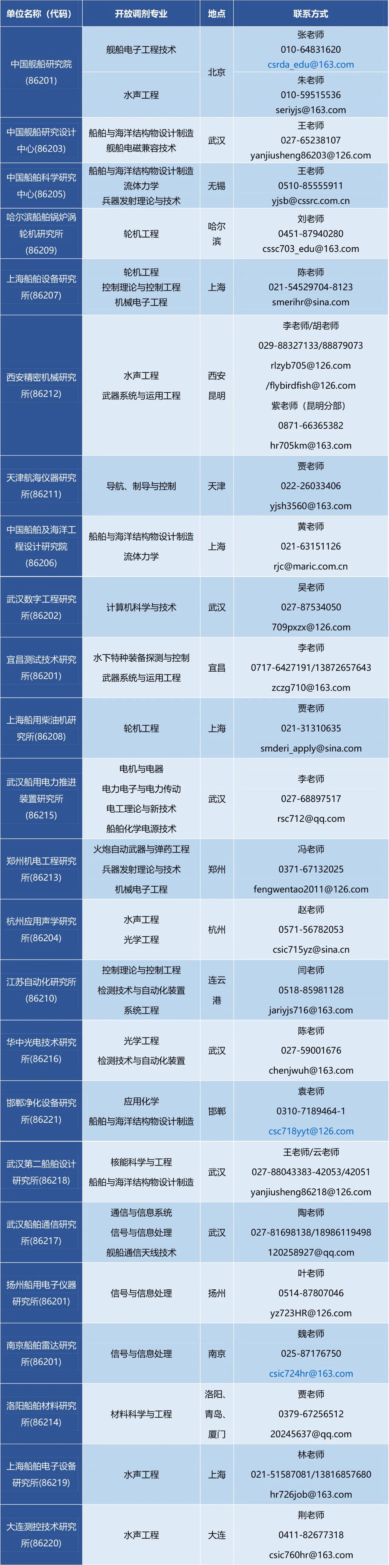 請考生將簡歷、本科成績單、初試成績單等材料打包(文件名以“姓名+初試總分+本科院校+本科專業+申請調劑培養單位+申請調劑專業”命名,如張三+345+哈爾濱工程大學+船舶與海洋結構物設計制造+中國艦船研究設計中心+船舶與海洋工程)投遞調劑單位聯系人郵箱,由培養單位對滿足調劑條件考生擇優篩選后,通知考生參加復試。