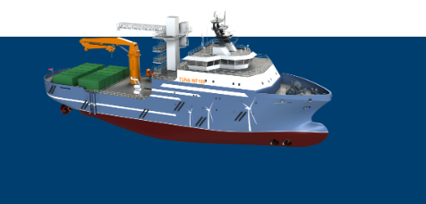 上船院設計的14000kW/13000kW/8000kW大馬力遠洋拖船和大馬力深水三用工作船為國內的首批浮式風機驗證工作提供了拖航保障、錨泊安裝服務。目前,上船院正在研究開發新型大馬力浮式風電安裝運維船舶一體船舶,將為浮式風電規模發展提供更加豐富的服務和保障。