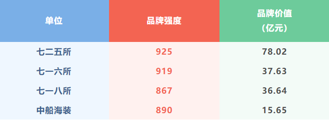 中國船舶集團旗下七二五所、七一六所、七一八所、中船海裝榜上有名。