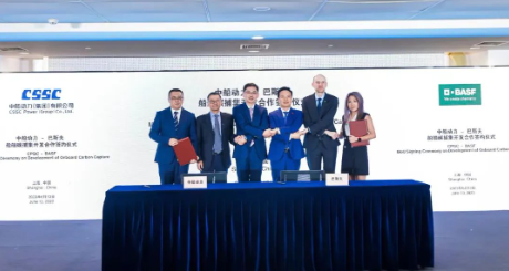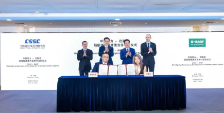 6月13日,中國船舶集團旗下中船動力(集團)有限公司與巴斯夫歐洲公司,在2023年上海國際碳中和技術、產品與成果博覽會上,正式簽署關于共同開發船舶碳捕集系統戰略合作諒解備忘錄。此次合作將發揮中船動力在船舶動力研發、制造與服務領域的領先優勢,以及巴斯夫前沿專業的氣體處理技術,加速開展船舶碳捕集的商業化應用,攜手助力全球航運業綠色發展。