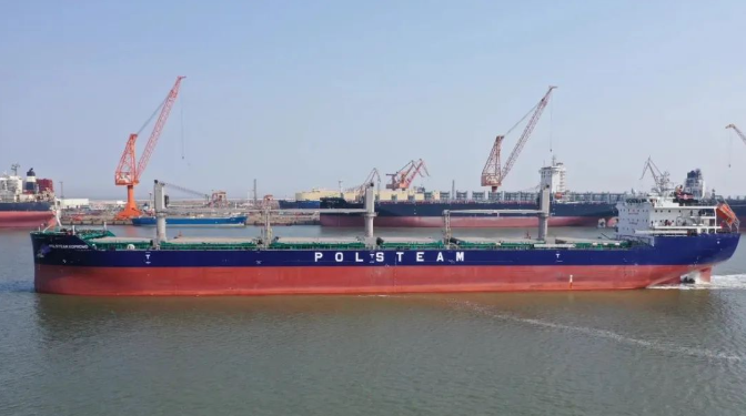 近日,中國船舶集團(tuán)大連造船所屬山船重工為波蘭PZM公司建造的3.7萬噸大湖型散貨船2號(hào)船完成試航。