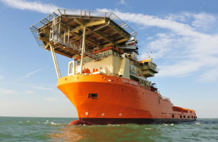 該船型由挪威著名的設(shè)計(jì)公司Salt Ship Design設(shè)計(jì),總長100米,型寬23米,配備4臺柴油發(fā)電機(jī)組驅(qū)動(dòng)的電力推進(jìn)系統(tǒng),2套艉部全回轉(zhuǎn)推進(jìn)器、1套艏部伸縮推進(jìn)器、2套艏部側(cè)向推進(jìn)器,以及1套1500千瓦時(shí)的儲能蓄電池系統(tǒng)。船上還配備1臺150噸帶主動(dòng)波浪補(bǔ)償功能的海工吊,可以在復(fù)雜的海況下完成最大3000米水深的海上作業(yè)。
