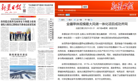 近日,中國船舶集團旗下中船科技子公司中船風電和哈密國投聯合開發的新疆哈密百萬千瓦風儲一體化項目首臺風機成功并網發電,央視《新聞聯播》、新華網和《新疆日報》等紛紛關注報道。