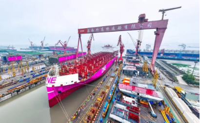 而此次出塢的7000TEU中型集裝箱船,是外高橋造船自2023年3月該型船首制船出塢以來的第24艘,實現了平均每月出塢2艘的“外高橋造船速度”。截至目前,外高橋造船今年已實現3型4艘船舶開工、4艘7000TEU集裝箱船入塢搭載、5艘7000TEU集裝箱船出塢、3型8艘船舶交付等多個生產節點,為全面高質量完成全年造船任務奠定了堅實基礎。