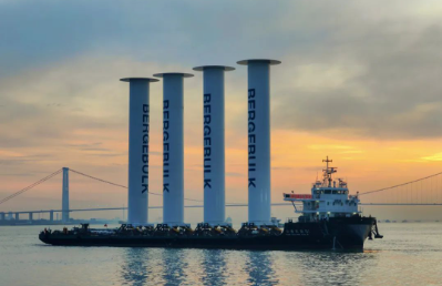 由中船澄西為Anemoi Marine Technologies公司建造的4套35米折疊式船用轉子帆,將安裝在一艘388000載重噸Valemax型礦砂船上,可以從垂直方向降低可折疊旋筒風帆,以減輕對氣流和貨物裝卸操作的影響。