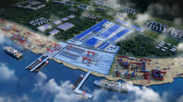 中船海裝象山大型海上風電裝備產業園區集合了海上風電機組設備總裝基地、智慧運維中心、葉片生產基地、發電機生產基地、齒輪箱生產基地、工程安裝公司、海上風電變頻器生產基地等7大基地,形成了一個集“大型海上風電全產業鏈裝備制造、大型海上風電工程安裝運維服務、大型風電設備存儲運輸”等功能于一體的大型海上智能化裝備制造中心。圖為該產業園設計效果圖。