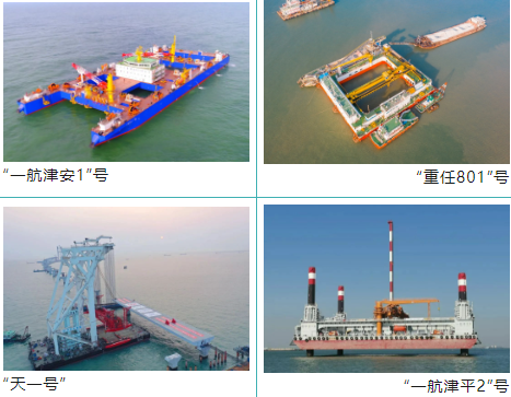 整個深中通道項目的建設過程中,動用了多艘重量級工程船舶,由黃埔文沖、廣船國際、七〇八所、上船院、華南船機等單位參與設計、建造或改造;武漢船機、七二五所還承攬了深中通道部分關鍵配套項目。